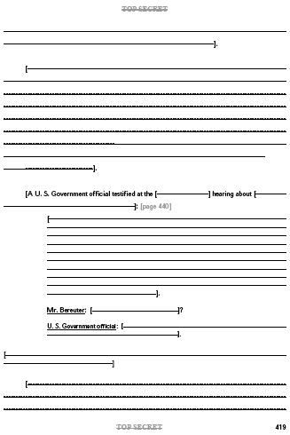 "Where necessary, information that the Intelligence Community has identified as classified for national security purposes has been deleted. Such deletions are indicated with brackets and a strikethrough [ ]...As a result of these changes to the text, the page numbers at the bottom of each page do not match those of the original report. In order to preserve a record of the original pagination, page numbers have been inserted in gray font [page xx] in the text to mark where the corresponding pages begin and end in the original report." |
